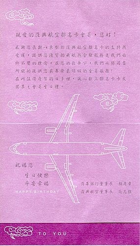 復興航空的賀年禮和生日禮優惠卷的顏色,每一年都設計得很高雅很漂亮耶!
