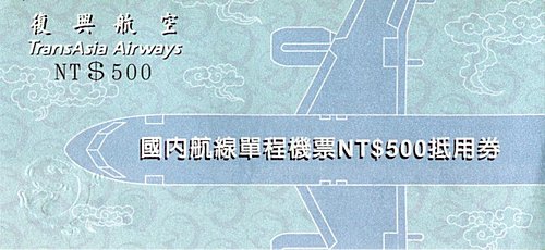 復興航空送給聯名卡會員的國內航線單程機票500元抵用卷,是賀年禮